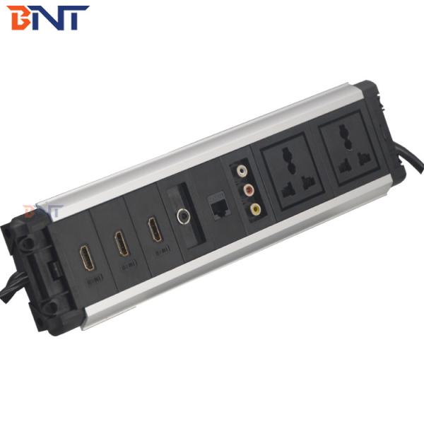 PTS Series is a partition socket, aluminum alloy material design, not easy to rust and durable. Hidden Screw Design,can not see the screws ,with PVC lid cover.It can provide universal power sockets that can be adapted to a variety of power plugs or other standard power socket accordingly.Various configurations available for replacement as per requirement, such as HDMI, VGA, audio, USB charger, etc.Supply for modern office multimedia conference system, conference room, training room, etc.